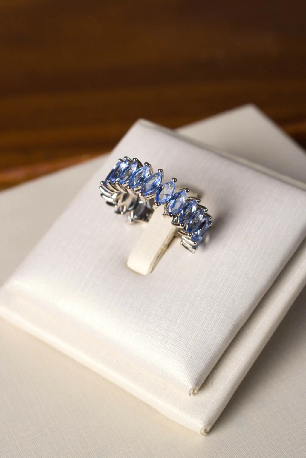 Anel com zircônias navetes com opção em semijoi ou prata 925, com banho de ródio branco.