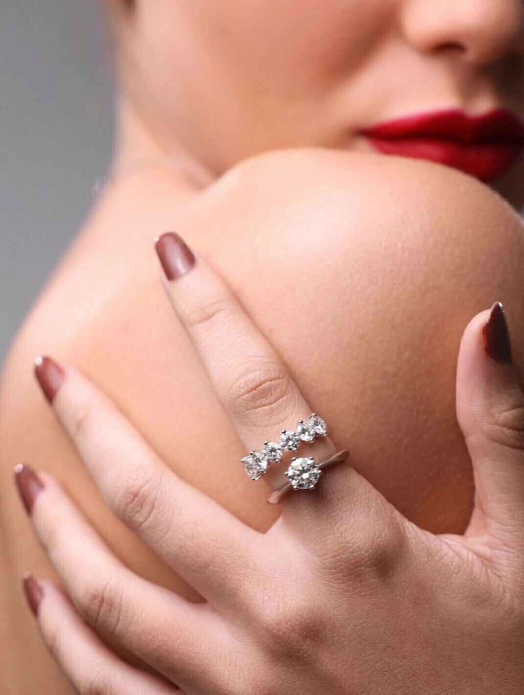 O moissanite, conhecido como o “diamante sustentável”, é uma gema sintética que possui características muito similares às do diamante. Sua dureza é equivalente à do diamante, e seu brilho pode até ser mais intenso. Ele é denominado "diamante sustentável" por não causar impacto ao meio ambiente, ao contrário do diamante natural, que é extraído de forma prejudicial ao ecossistema.