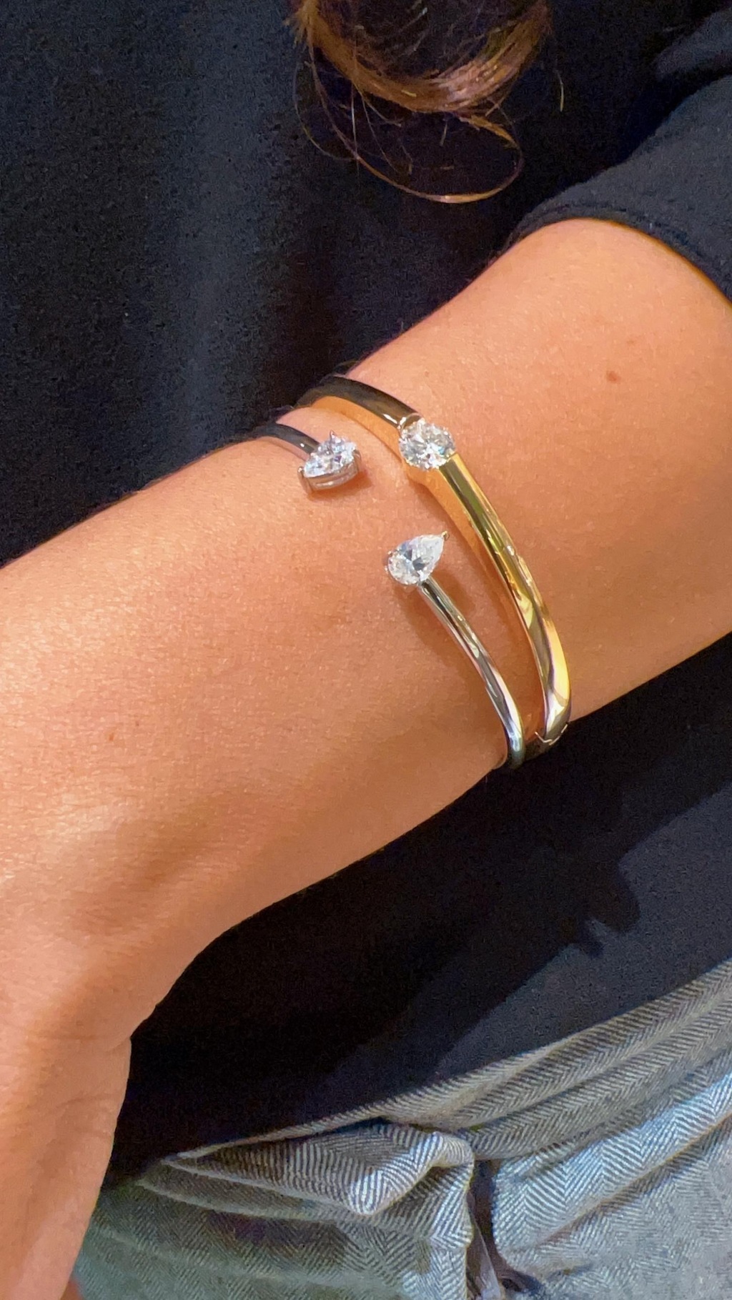 Bracelete articulado em prata 950 com banho de ródio e 2 gotas em Moissanite.