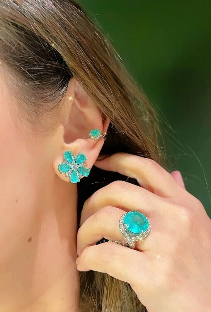 Brinco Orquídea Esmaltada cravejada com turmalina fusion