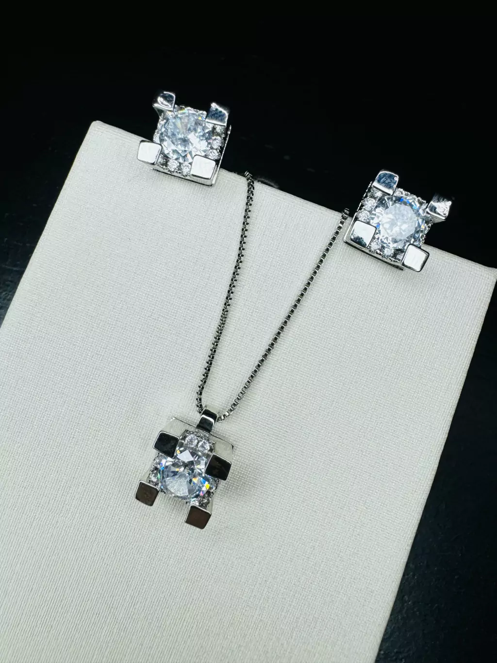 Colar solitário em zircônia envolvido dentro de caixa com 4 garras e micro cravação.